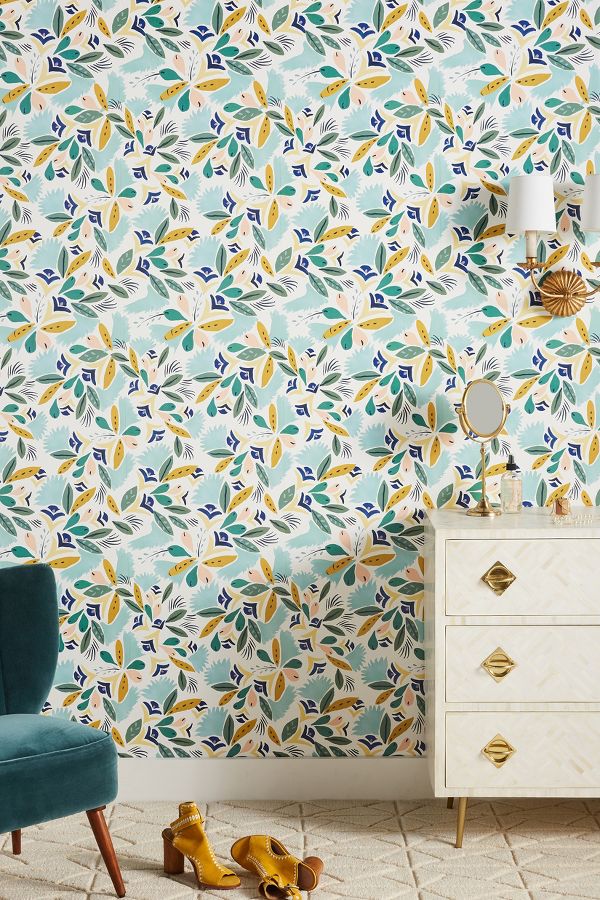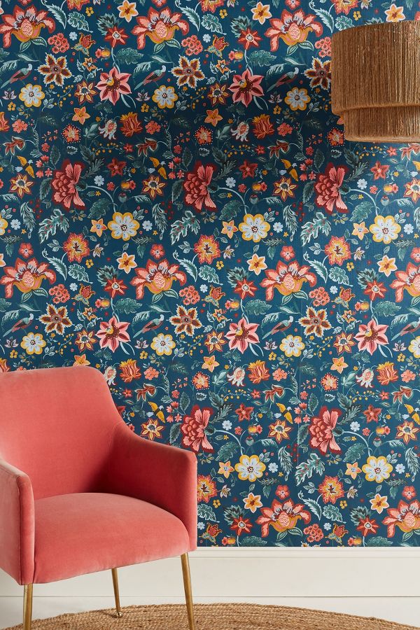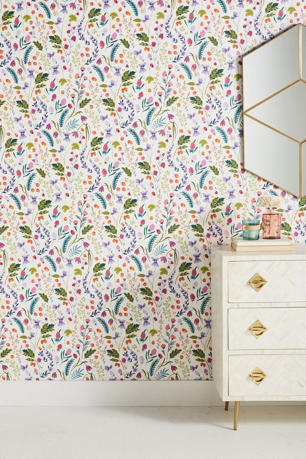 Floral Boho Wallpaper Flowers Wallpaper Vintage Wallpaper Anthropologie Wallpaper Watercolor Wallpaper Artemis Wallpaper